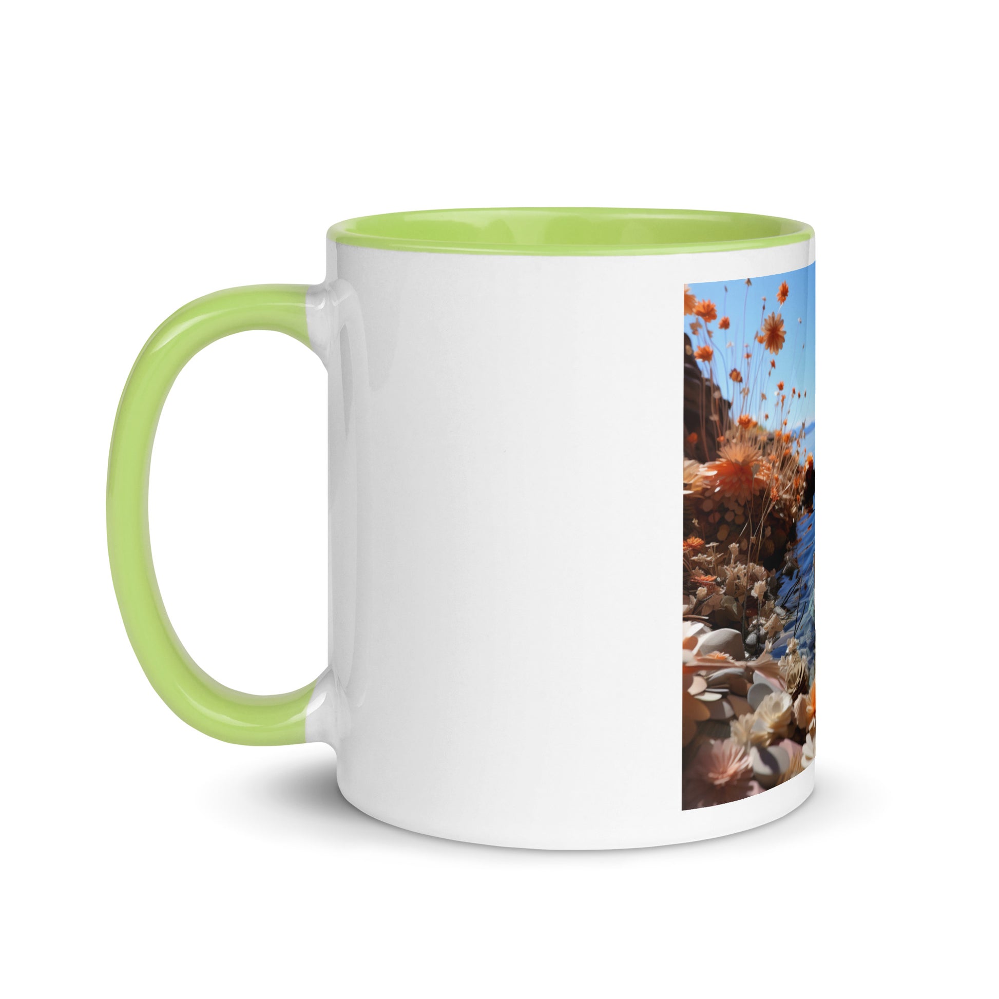Add a splash of color to your morning coffee or tea ritual! These ceramic mugs not only have a beautiful design on them, but also a colorful rim, handle, and inside, so the mug is bound to spice up your mug rack.