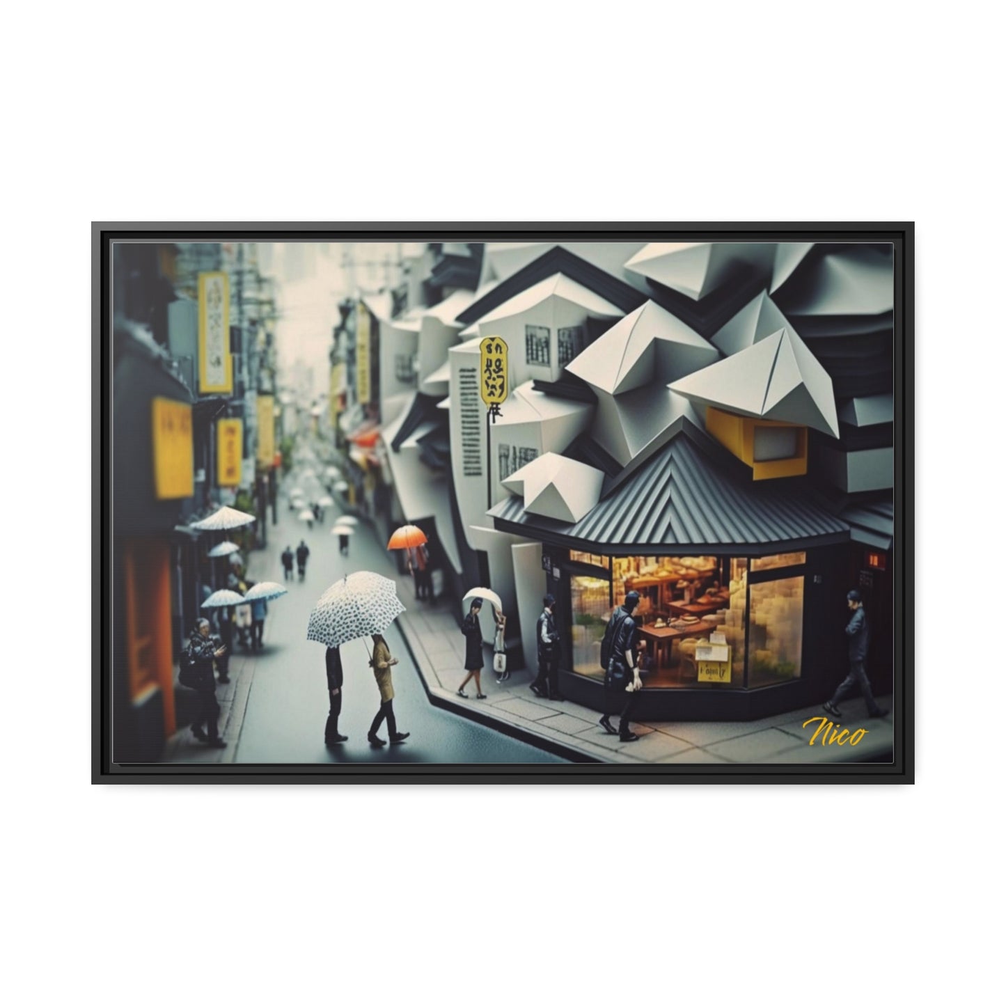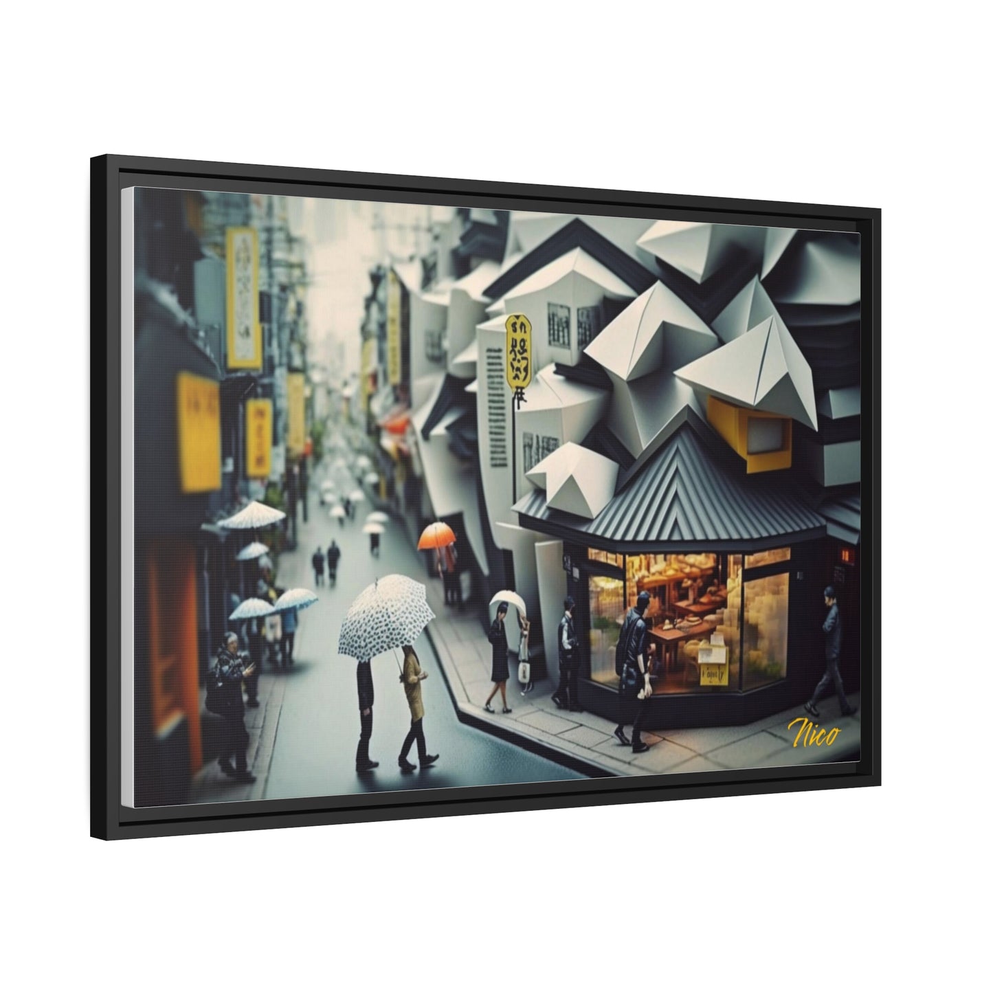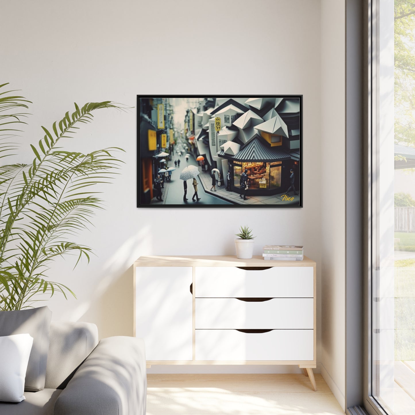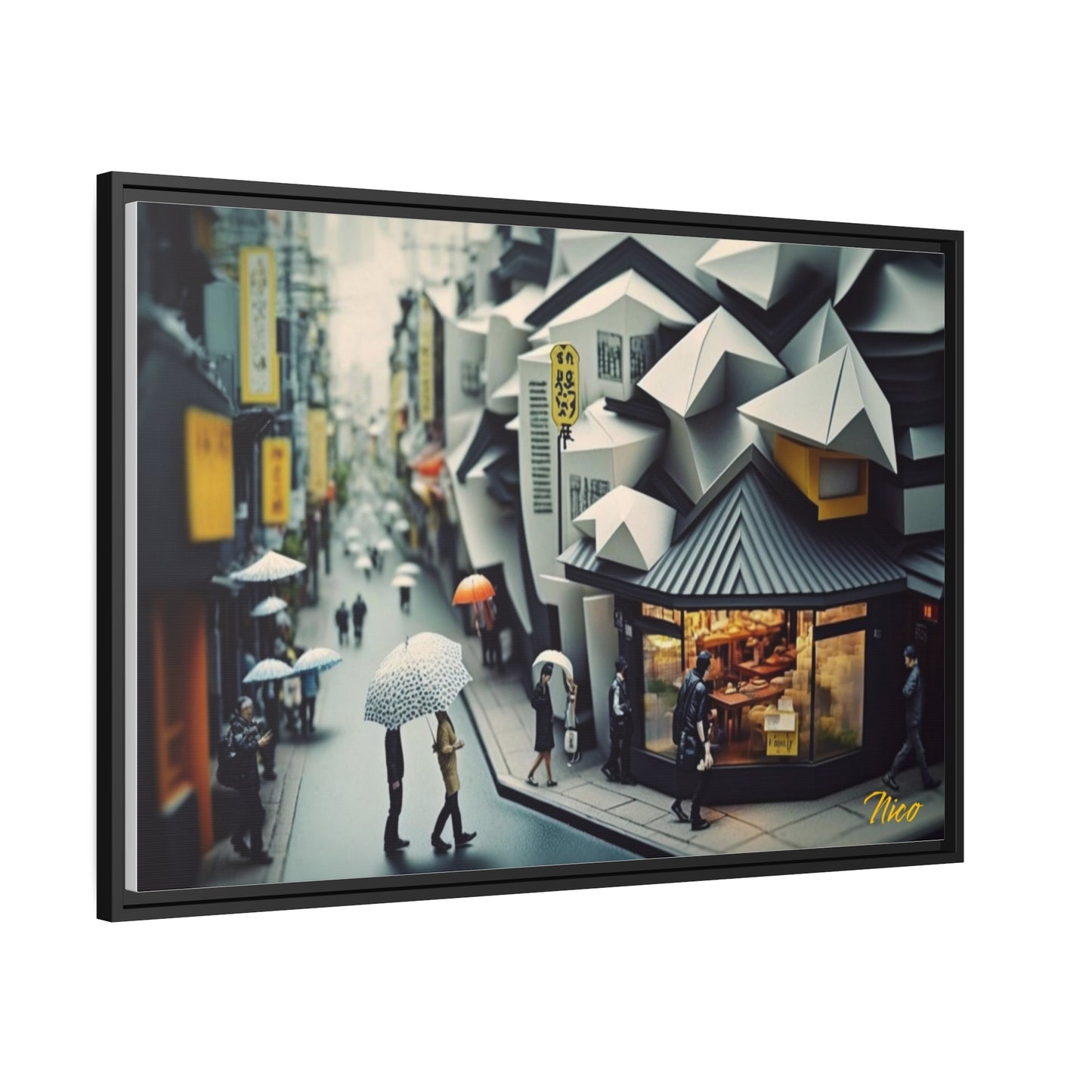オリエンタル レイン シリーズ プリント #3 - ブラック フレーム キャンバス プリント
