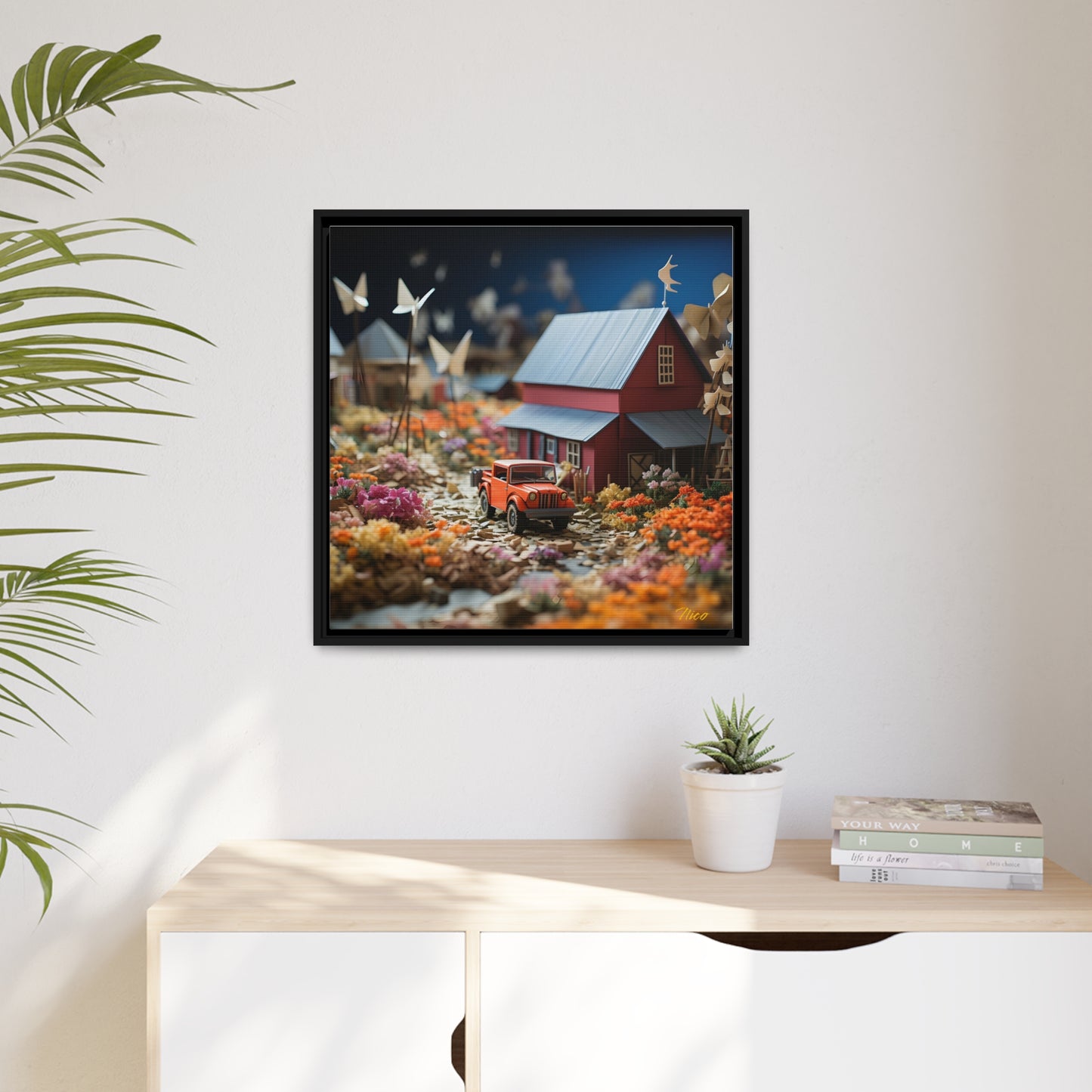 Every print in a black pinewood frame will look sleek and beautiful in any interior. It is printed on a cotton-polyester canvas with a special proprietary coating to make sure it stays vibrant for ages. An excellent product for environmentally-conscious buyers – it's made from sustainably sourced materials (Forest Stewardship Council certified). Choose between multiple sizes.