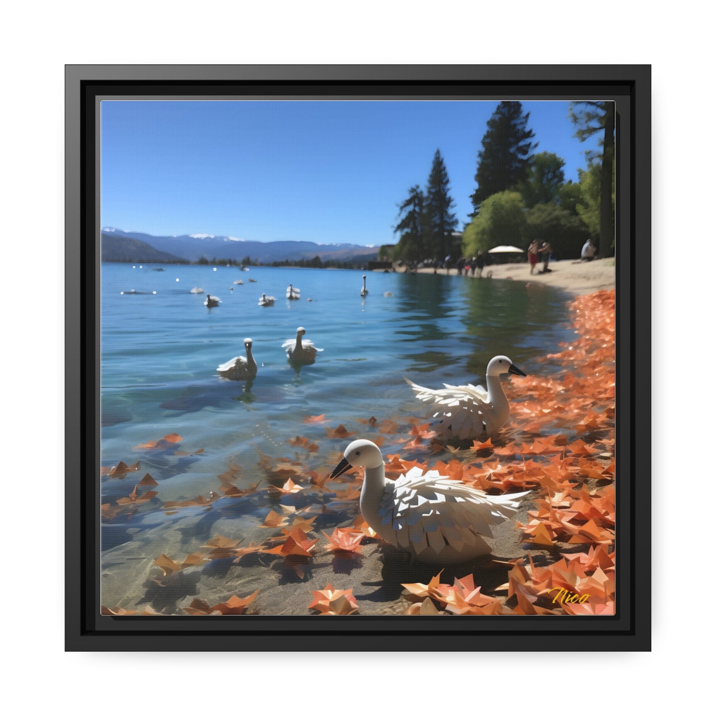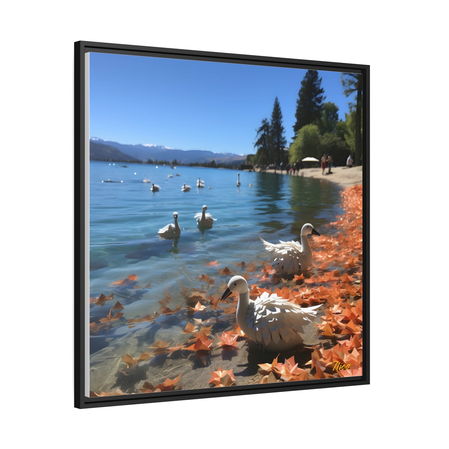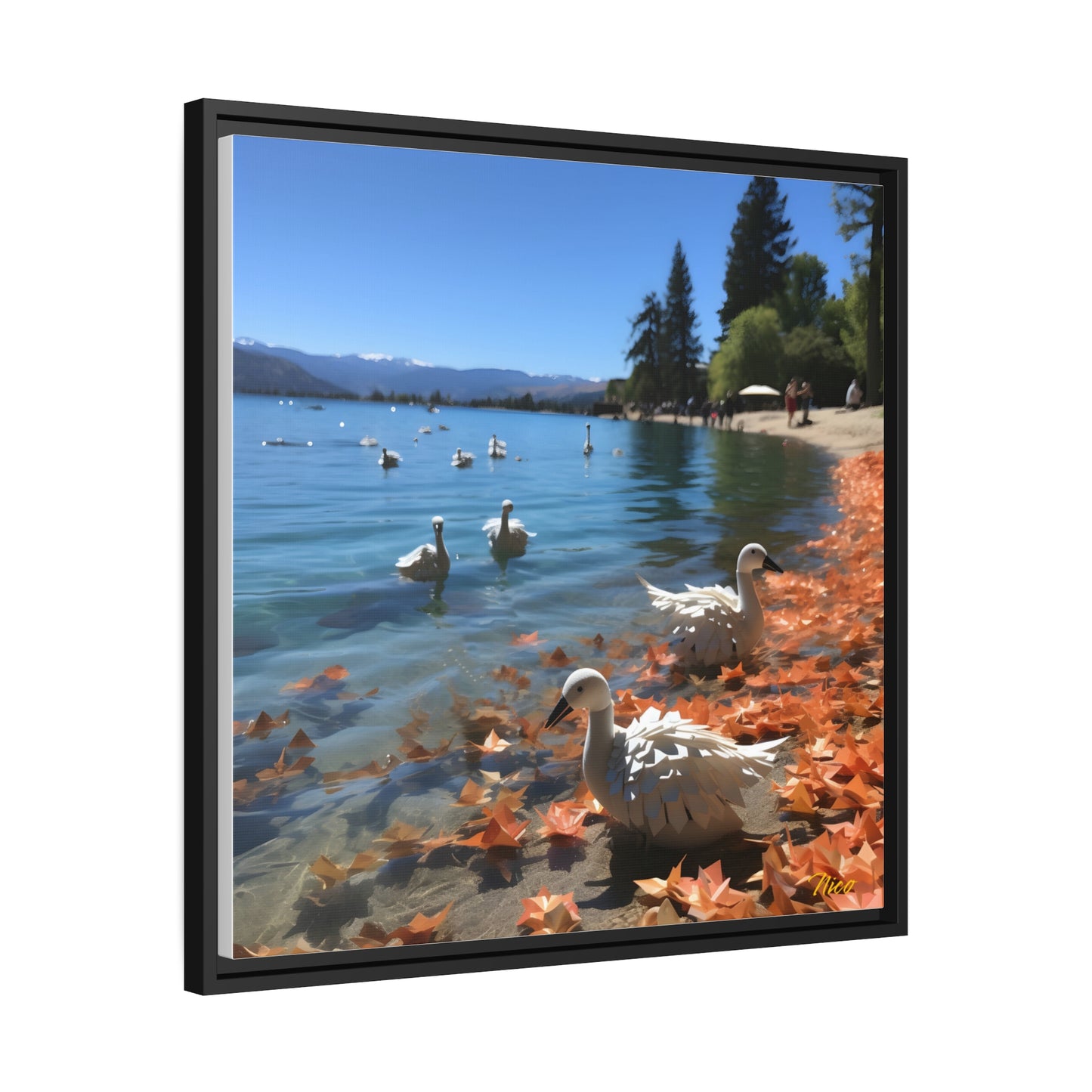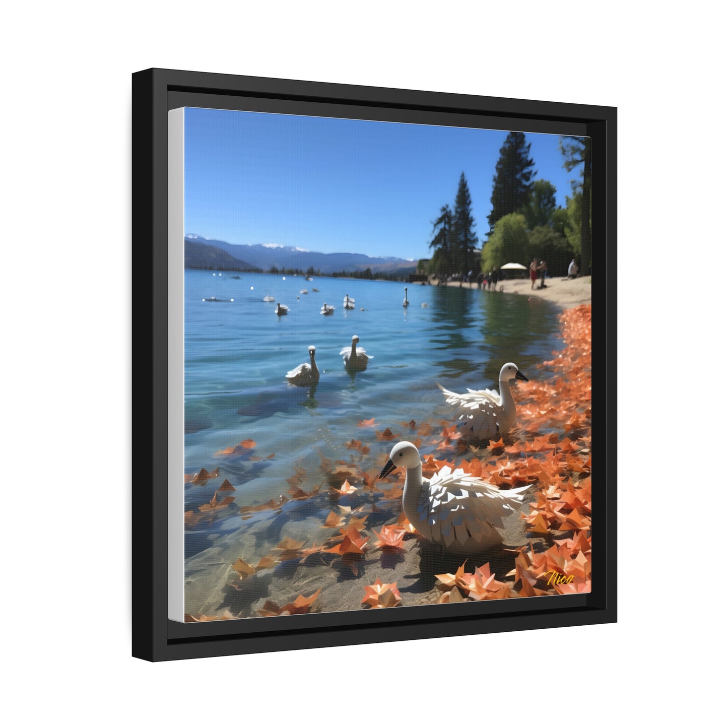 Atop The Mountain Lakeshore Series Print #2 - Black Framed Canvas Print