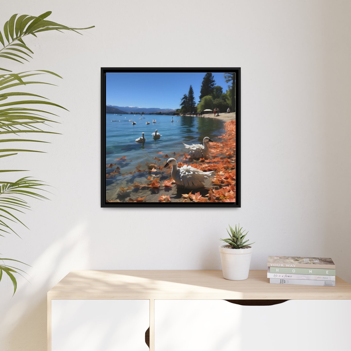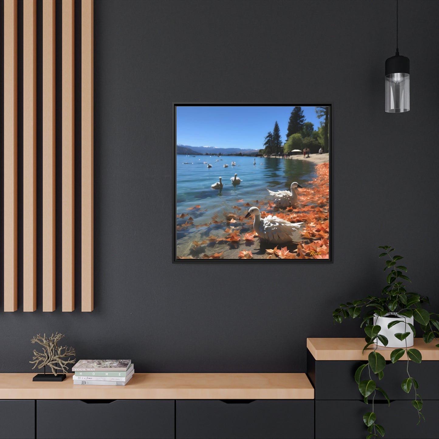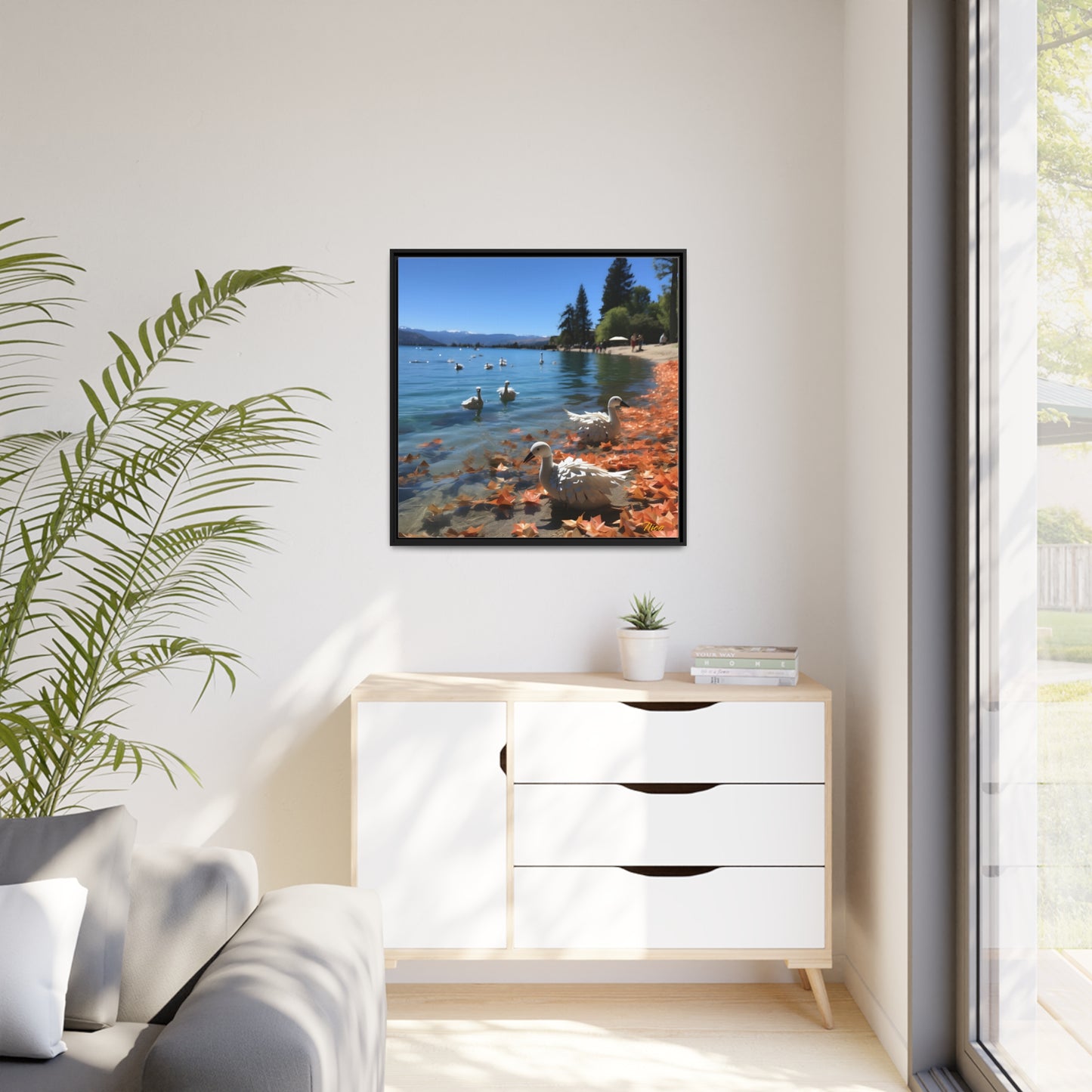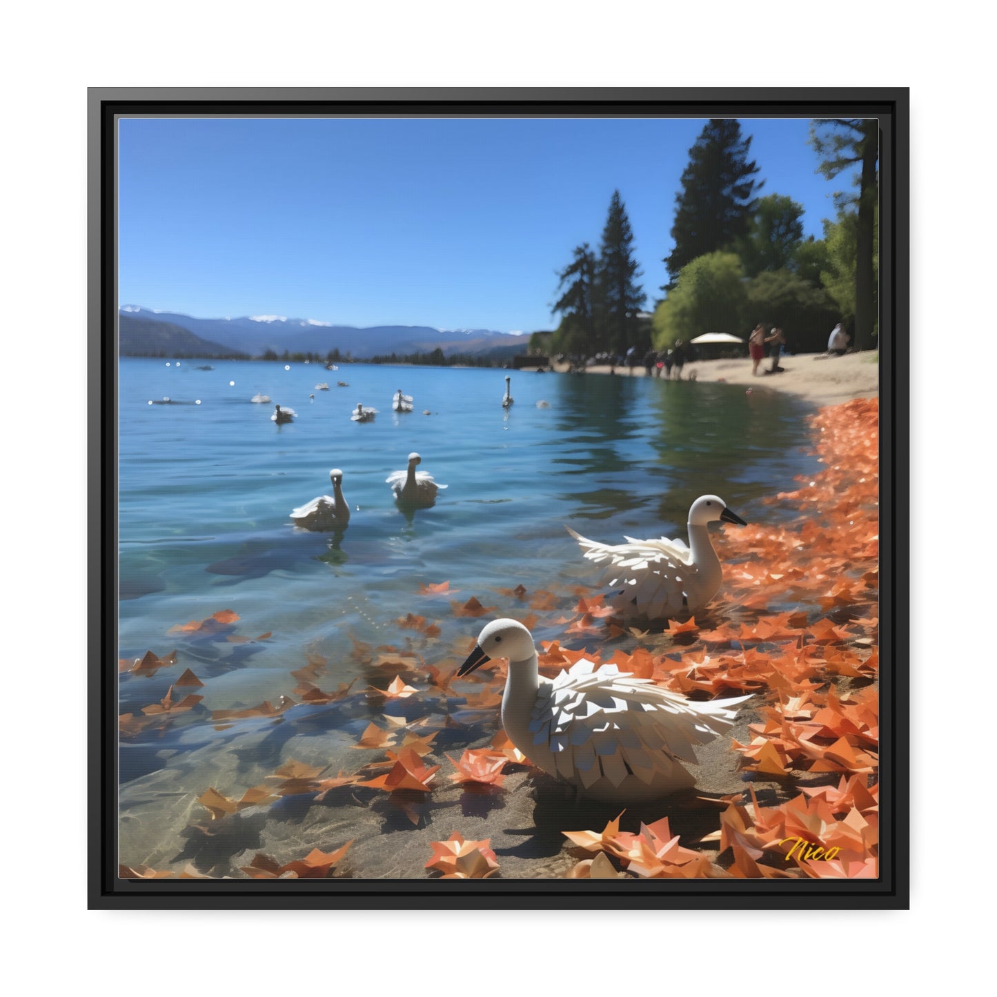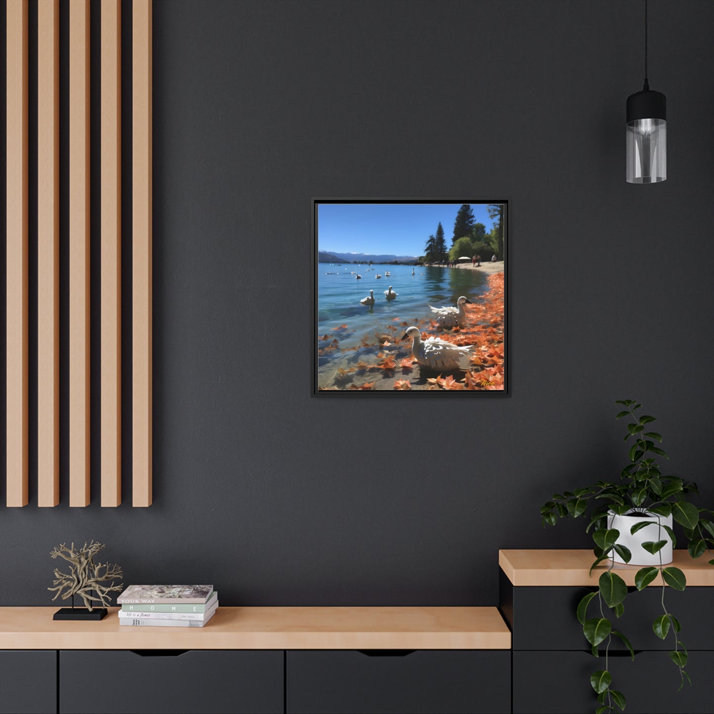 Atop The Mountain Lakeshore Series Print #2 - Black Framed Canvas Print