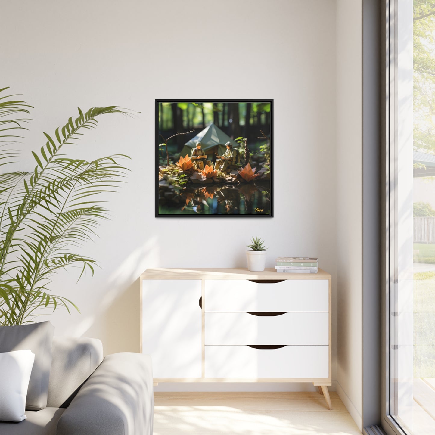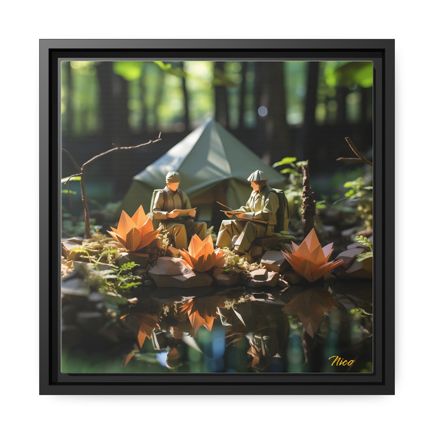 Relaxing By The Brook Series Print #7 - Black Framed Canvas Print